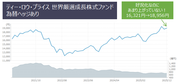 | 2021年から1年間 | ティー・ロウ・プライス 世界厳選成長株式ファンド(Aコース/為替ヘッジあり) |